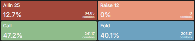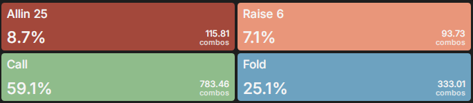 Aqui podemos ver como reacciona el rango de apertura de BTN con 25bb ante un 3bet Allin por parte de la BB